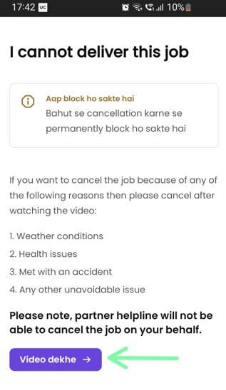 - Pro cannot deliver - Accident/Medical/Emergency/Any other issue