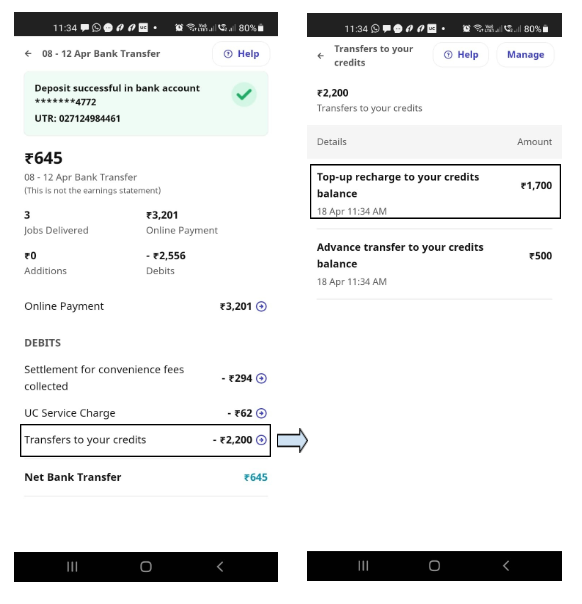 - In Partner's App this deduction is visible as same as shown in below images taken from Partner App.