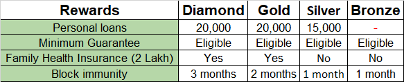 Answer: The PSP has ranks like Diamond, Gold, Silver, and Bronze. Each rank comes with benefits such as personal loans, minimum guarantees, family health insurance, and protection from being blocked.