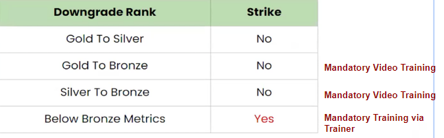A: If your profile gets struck, you'll need to undergo mandatory training and meet certain criteria like maintaining good ratings, avoiding cancellations, working enough hours on weekends, and following SOPs.