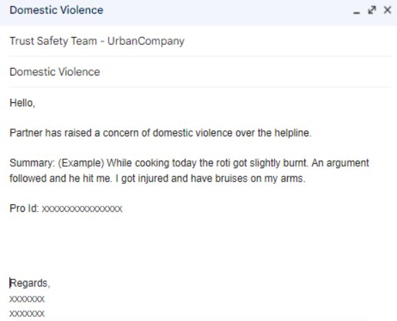 The agent will write an email to Trust and Safety team in the below format and create a TNS ticket. Afterwards, the agent will resolve the ticket informing partner that case has been forwarded to the concerned team: