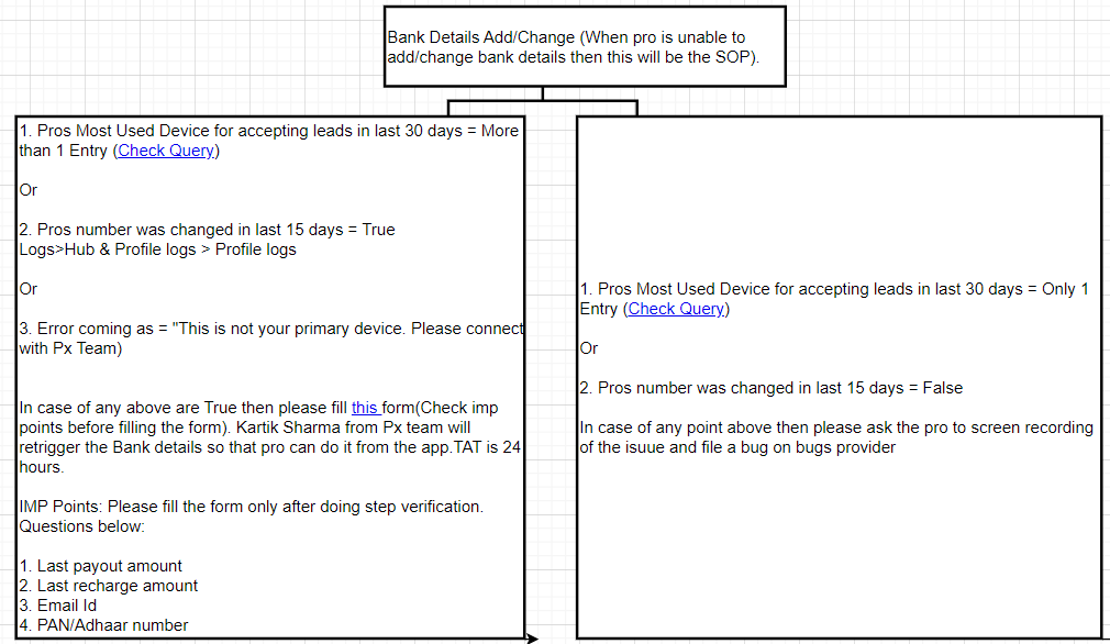 Bank Details Add/Change (When pro is unable to add/change bank details then this will be the SOP).